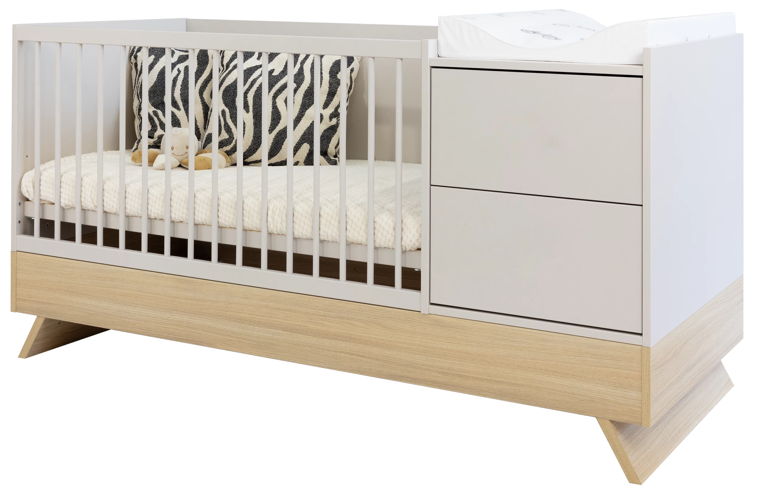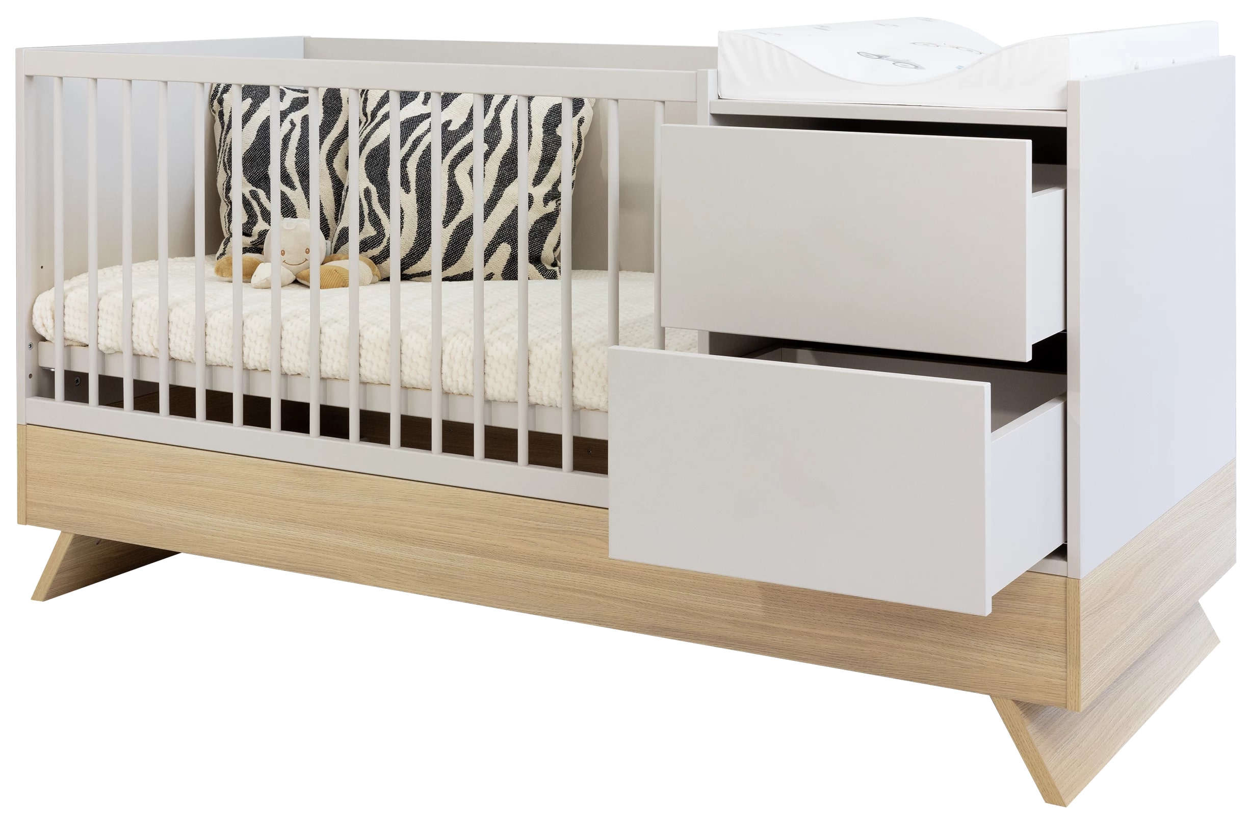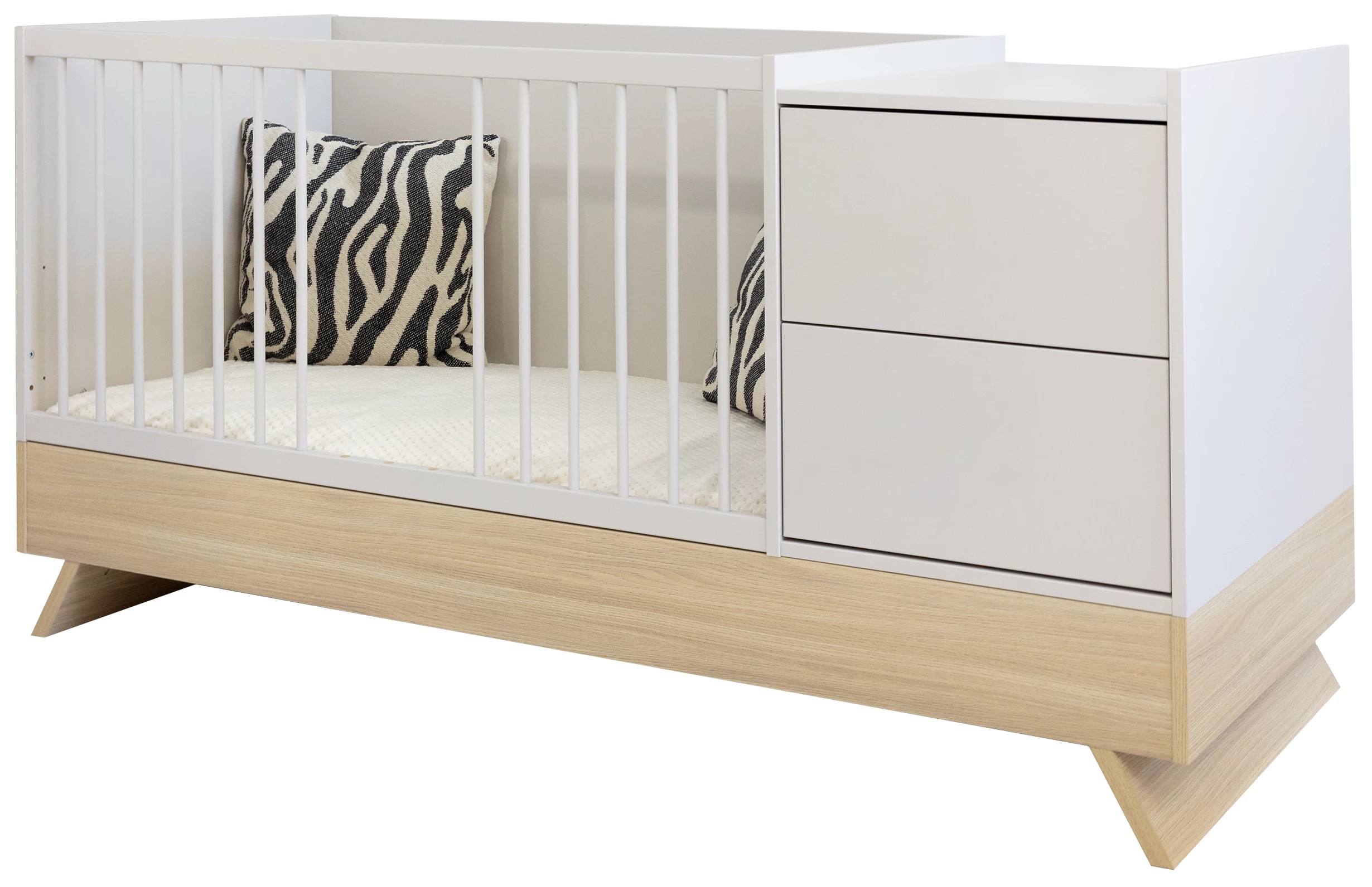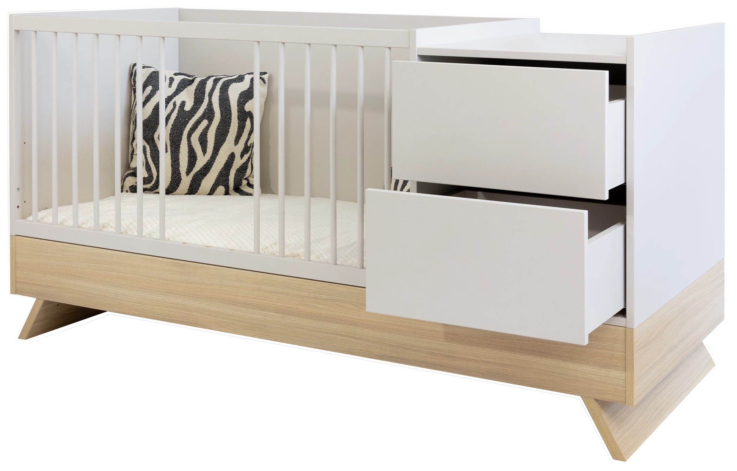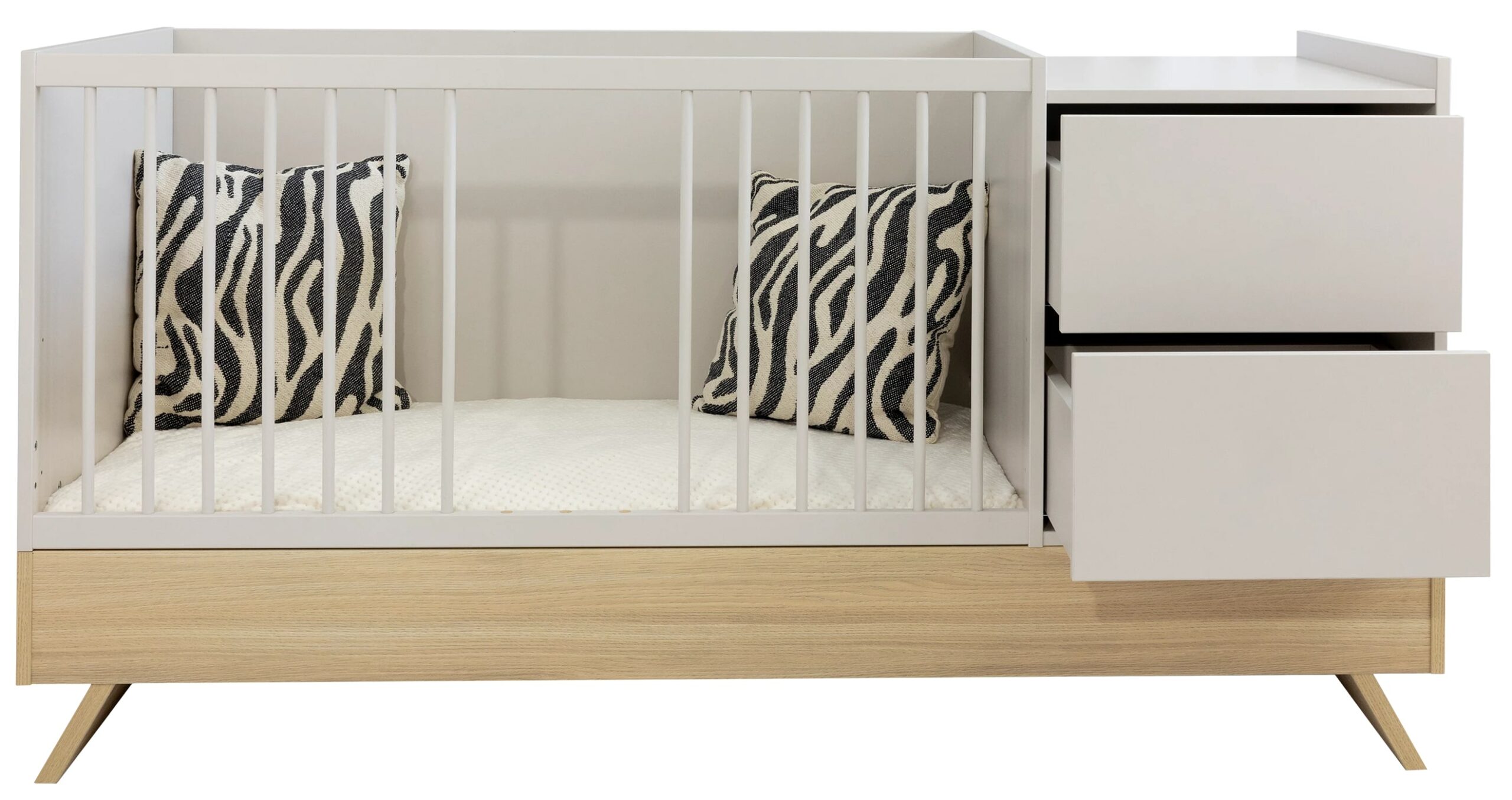 With its 3-in-1 function it’s designed to grow with your child: it begins as a baby bed with dresser, then easily transforms into a junior bed and a practical storage unit —remaining a beloved part of your child’s room for many years to come.