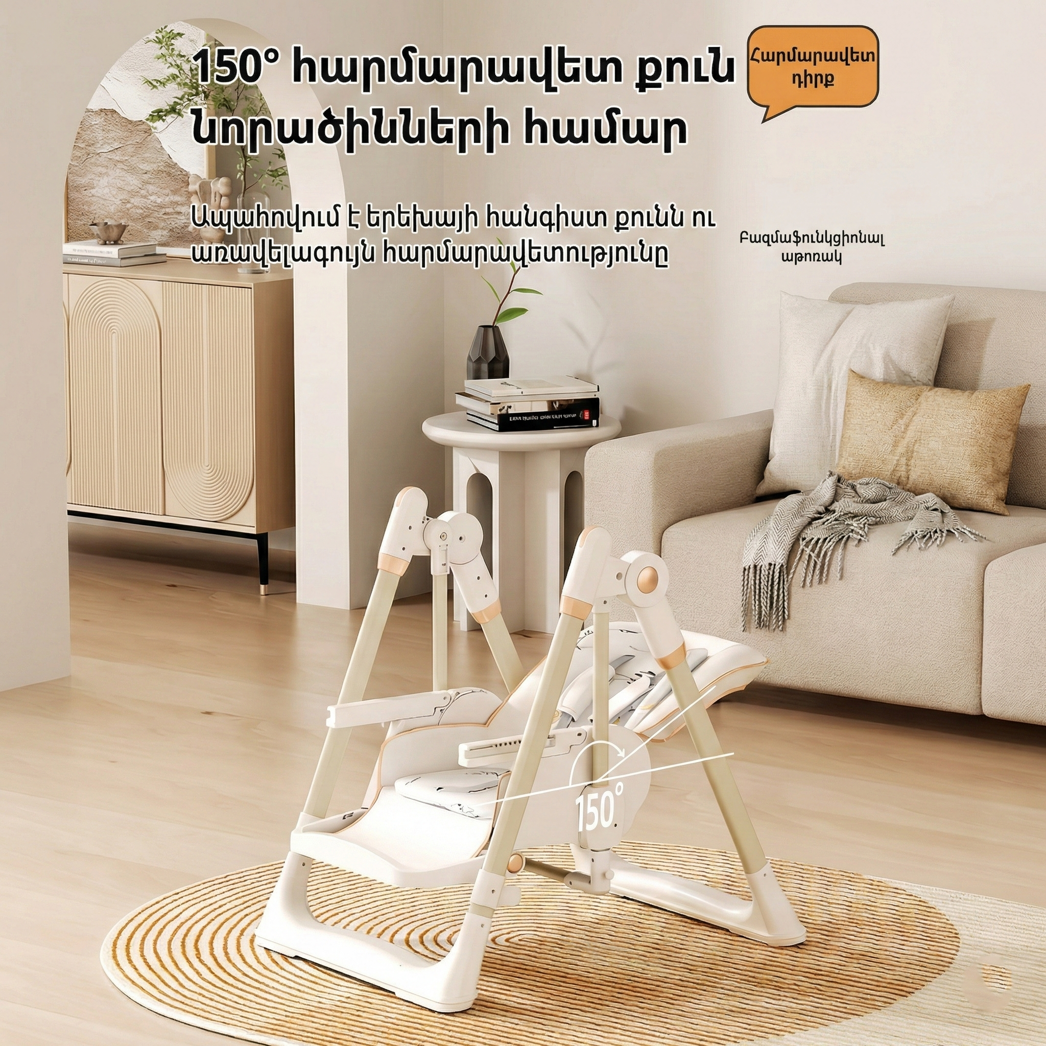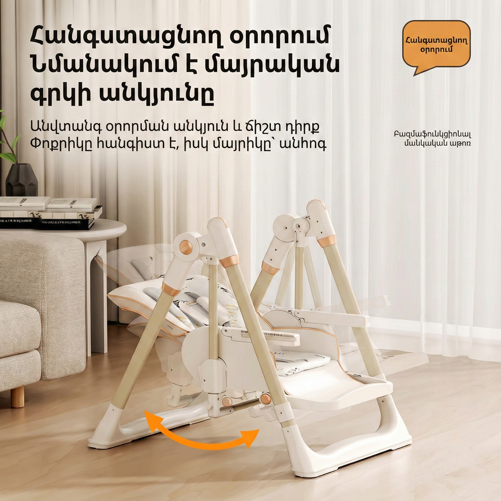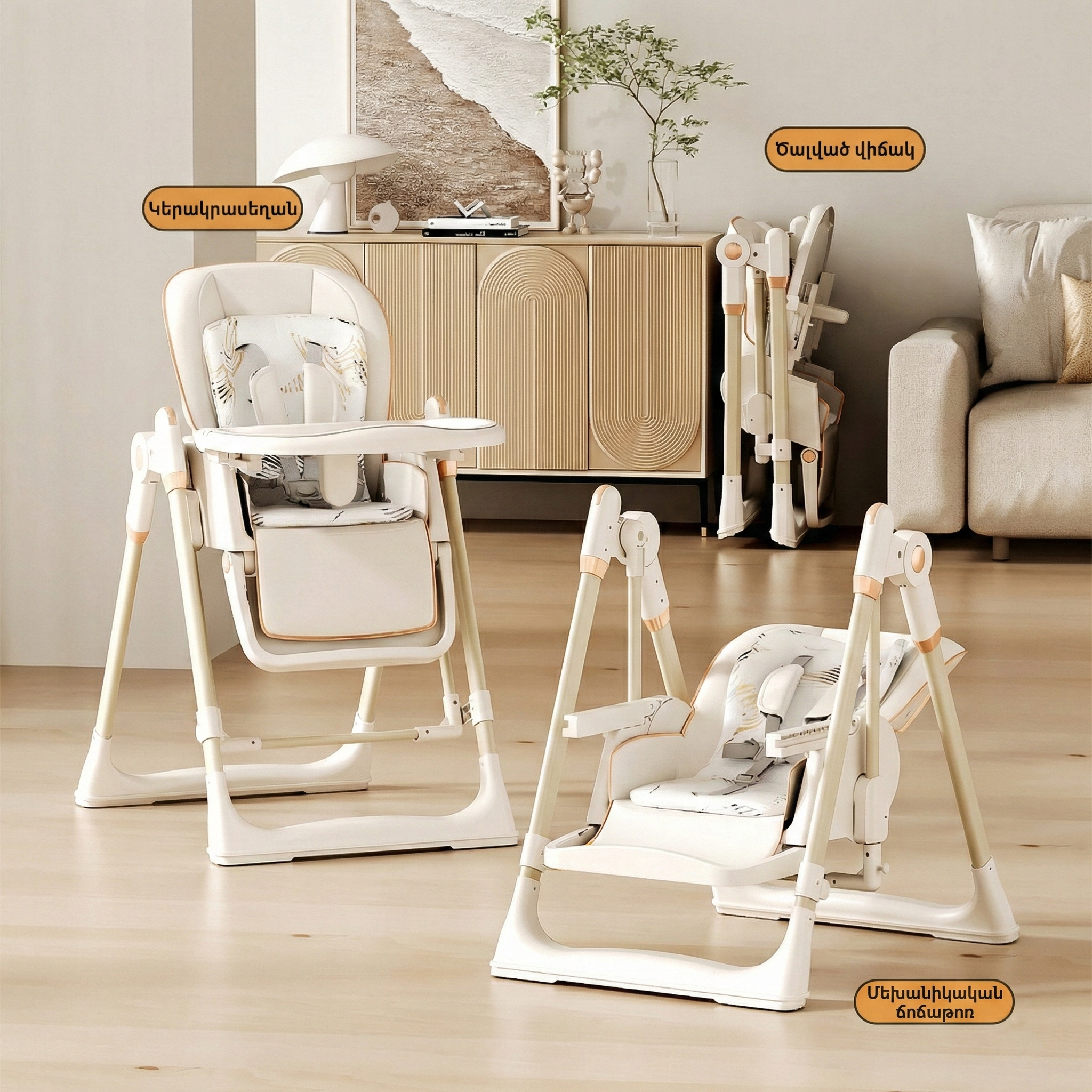 Стульчик для кормления из эко кожи + механические качели (Beige)