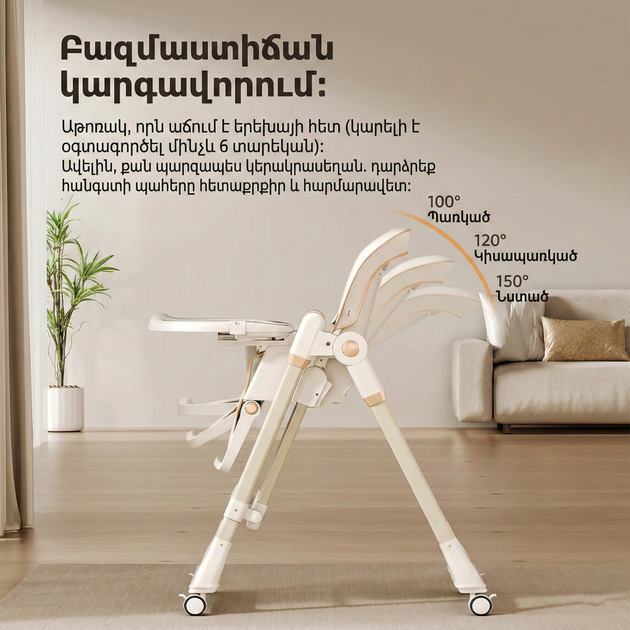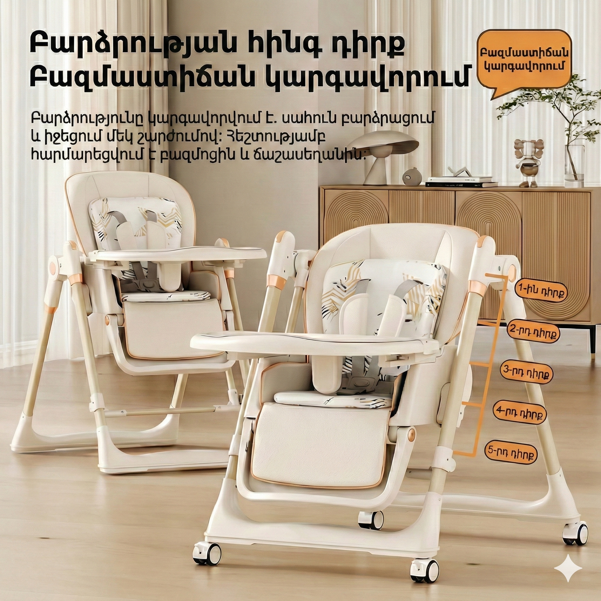 Этот многофункциональный детский стульчик для кормления предназначен для удобства кормления и отдыха вашего малыша. Он оснащен функцией механического укачивания, что позволяет успокоить и убаюкать ребенка. Стульчик легко складывается и хранится, что делает его идеальным для использования дома. Он оснащен съемным антибактериальным подносом, регулируемым сиденьем и спинкой, а также колесами.